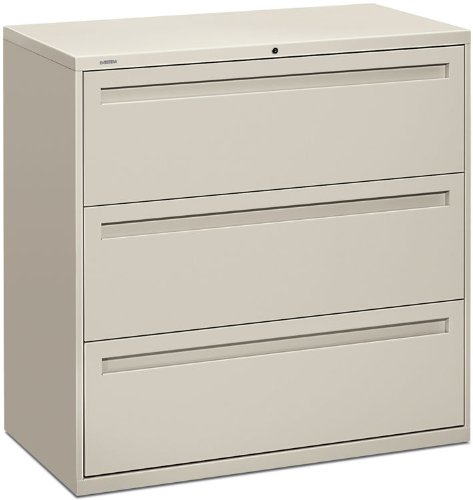 42inW 3 Drawer Lateral FilebyHON Trusted: 20+ Years Experience. Overall: 42 in W x 19.25 in D x 40.88 in H , 40 steel ball bearings per slide Mechanical interlock inhibits tipping Accommodates letter and legal files Recessed aluminum pull Ships fully assembled