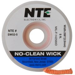 NTE Solder Wick is made from fine copper wire woven together with a no-clean flux formula added to it to increase absorption.